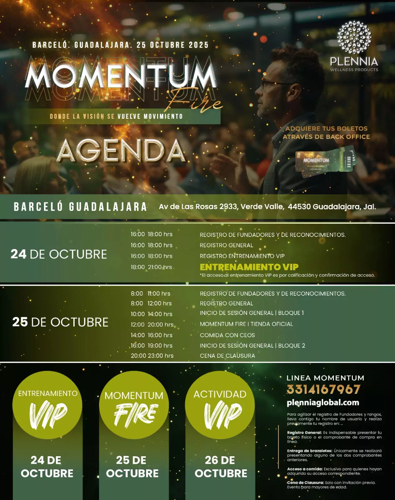 La Sesión General de Momentum Fire es el corazón del evento, el momento en el que toda la familia Plennia se reúne para vivir una experiencia de energía, inspiración y unidad.